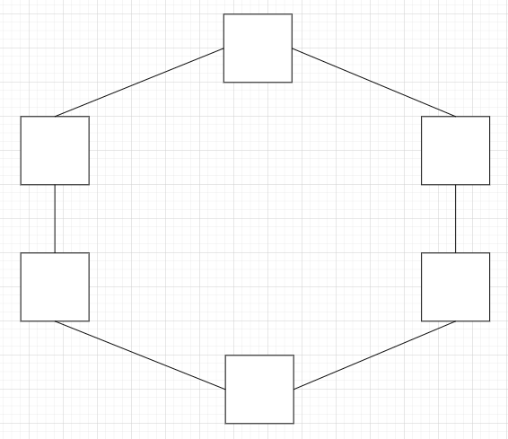 - 링형 토폴로지는 각각의 노드가 양 옆의 두 노드와 연결하여