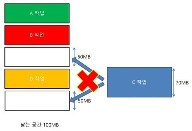 | 최악 적합 (Worst Fit) | 전체를 다 뒤져서 가장 안맞는 곳에 들어가는 것이다 |