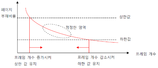 만약 상한선에 도달한다면 페이지를 늘리고 하한선에 도달한다면 페이지를 줄이는 것이다