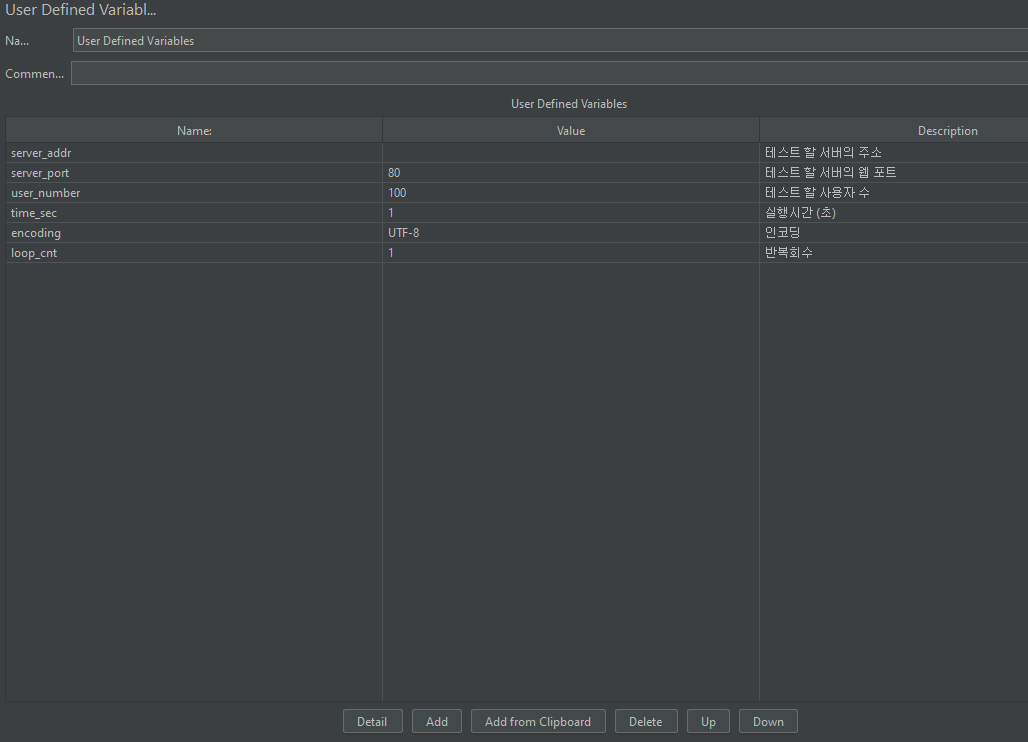 나는 환경변수를 설정해서 앞에 만든 User Defined Variables에서 사용할 것이다