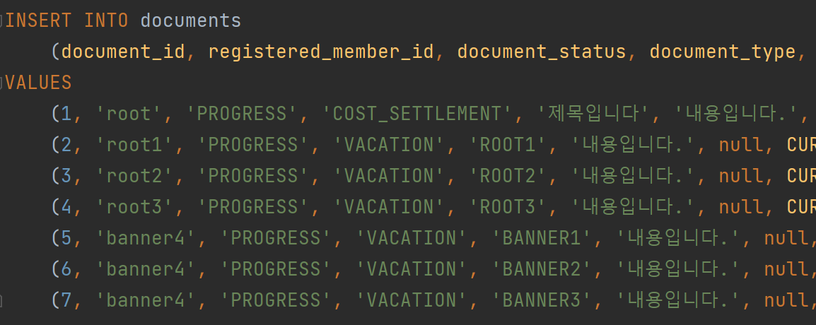 테스트를 위해서 8명의 member를 만들고7개의 document를 만드는데 이는 5명의 member가 나눠 가진다