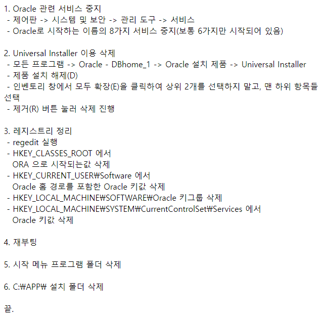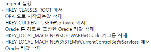 오라클의 경우 설치할때도 번거로운데 삭제할때는 더 번거롭다