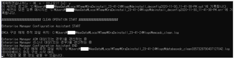 c드라이브 -> app -> 사용자이름 -> product -> 11.2.0 -> dbhome_1 -> deinstall