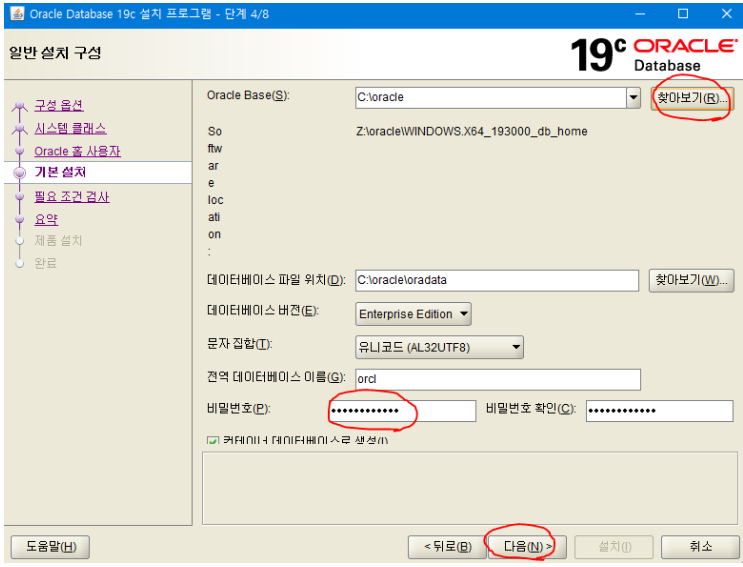 4) 위치와 비밀번호 입력 (비밀번호는 아무렇게해도 상관없다)