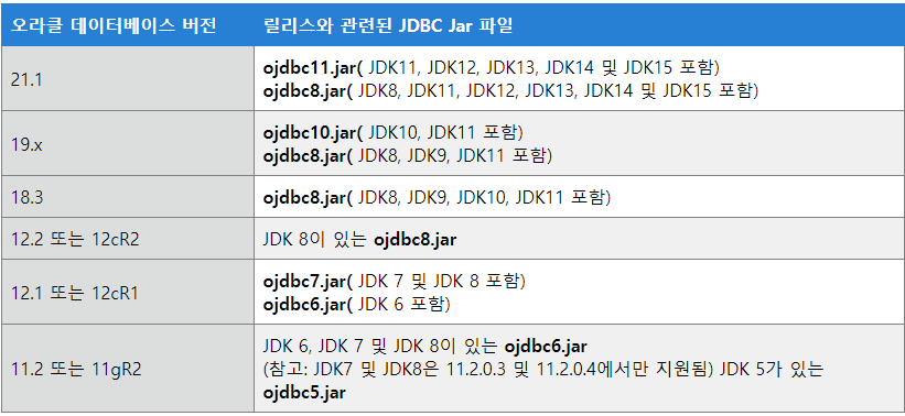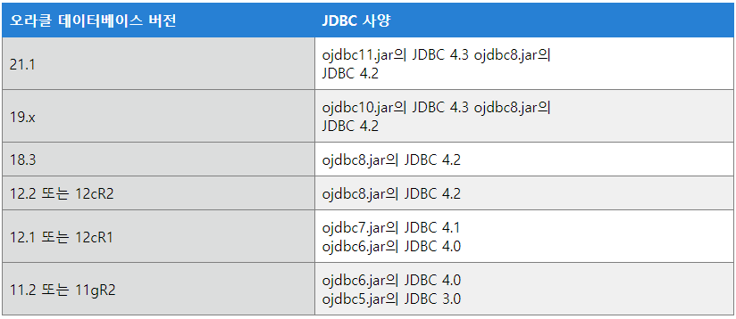 1. Oracle에서 지원하는 JDBC 드라이버 버전을 살펴보자