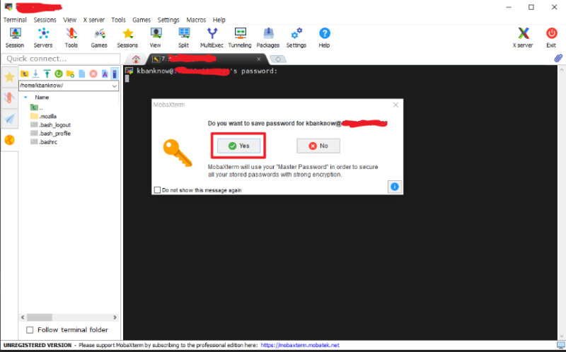 이때 yes 를 하면 마스터 패스워드를 등록하라고 하고