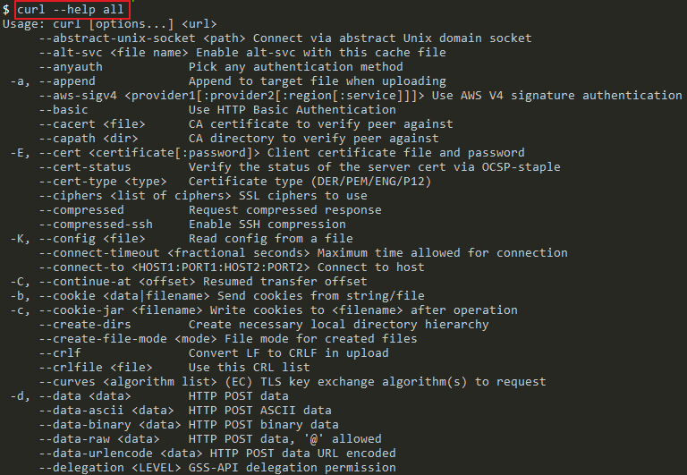 $ curl --help all # 전체 명령어 보기